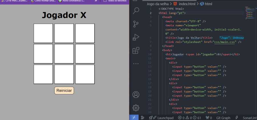 Jogo da velha interativo como parte do meu portfólio de desenvolvimento web. Este projeto demonstra minhas habilidades em HTML, CSS e JavaScript, além de conceitos de lógica de jogo e interatividade com o usuário.